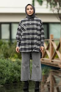 Modalamelif Önü Düğme Detaylı Tek Cepli Ekose Gömlek Gri