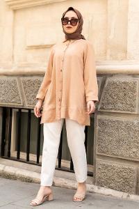 Lamelif Kol Tünel İp Detaylı Gömlek Bej