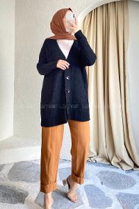 Modalamelif Önü Düğmeli Baklava Desen Triko Hırka Siyah