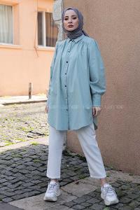 Modalamelif Önü Düğmeli Balon Kol Gömlek Çağla