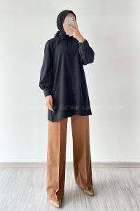 Modalamelif Önü Düğmeli Balon Kol Gömlek Siyah