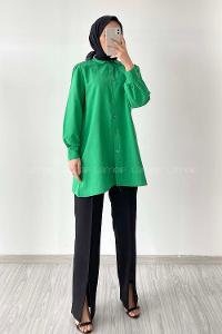 Lamelif Manşeti Biyeli Tunik Fıstık Yeşili