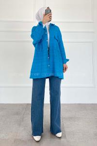 Lamelif Kol Detaylı Gömlek Saks Mavisi