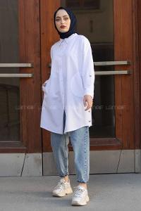 Lamelif Gizli Düğme Detaylı Tesettür Tunik Beyaz