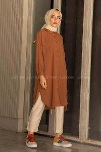 Lamelif Omuz Vatka Detaylı Tesettür Gömlek Acı Kahve