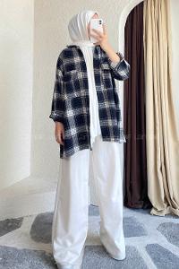 Lamelif Omuz Vatka Detaylı Tesettür Gömlek Bebe Mavisi