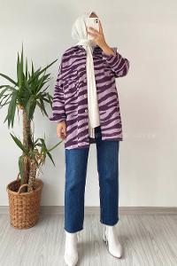 Modalamelif Önü Düğmeli Çift Kapak Cepli Dalga Desenli Gömlek Lila-Mor