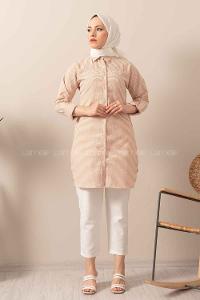 Lamelif Manşeti Biyeli Tunik Beyaz