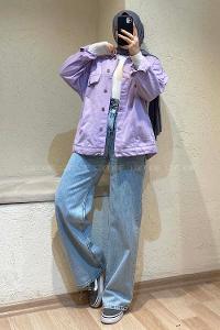 Modalamelif Önü Düğmeli Crop Ceket Lila