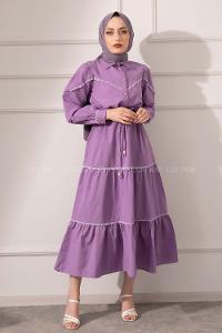 Modalamelif Önü Düğmeli Dantelli Elbise Lila