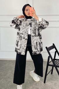 Lamelif Dekoratif Cep Detaylı Tesettür Ceket Lacivert