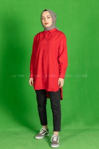 Modalamelif Önü Düğmeli Diagonel Tunik Kırmızı