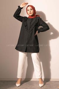 Modalamelif Önü Düğmeli Fırfırlı Tunik Siyah