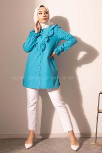 Modalamelif Önü Düğmeli Fırfırlı Tunik Turkuaz