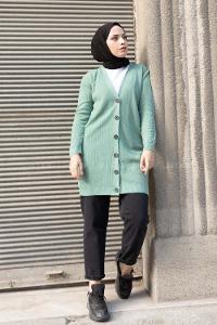 Modalamelif Önü Düğmeli Hırka Su Yeşili