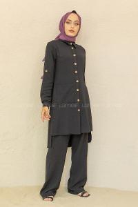 Lamelif Ön Parça Detaylı İkili Takım Antrasit