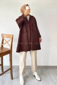 Lamelif Omuz Vatka Detaylı Tesettür Gömlek Acı Kahve