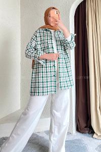 Lamelif Omuz Vatka Detaylı Tesettür Gömlek Yağ Yeşili