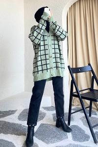 Modalamelif Önü Düğmeli Kareli Hırka Çağla Yeşili
