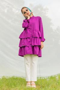 Modalamelif Önü Düğmeli Kat Kat Gömlek Mor