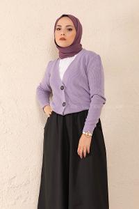 Modalamelif Önü Düğmeli Kısa Hırka Lila