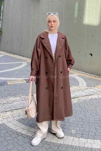 Lamelif Önü Düğmeli Mevsimlik Trençkot Kahverengi