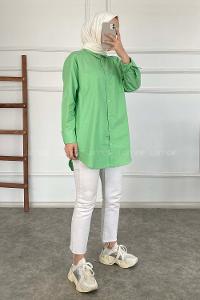 Modalamelif Önü Düğmeli Oversize Gömlek Yeşil