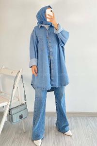 Lamelif Boyfriend Kot Ceket Açık Mavi