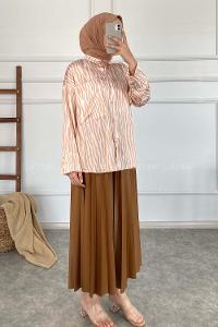 lamelif Piliseli Uzun Gömlek Acı Kahve