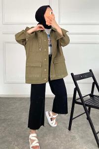 -boydan çıt çıt düğmeli çift cepli kot Ceket