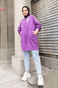 Modalamelif Önü Fermuarlı Arma Baskılı Hırka Mor