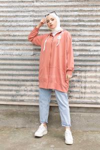 Lamelif Kalp Nakış Detaylı Oversize Hırka Pembe