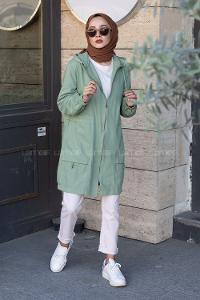 Modalamelif Önü Fermuarlı Çift Cepli Ceket Çağla