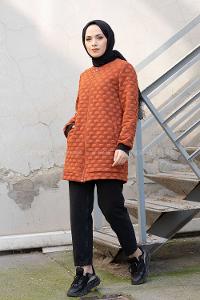 Lamelif Kemerli Tesettür Ceket Kahverengi