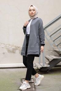 Modalamelif Önü Fermuarlı Kapitone Hırka Bohem Gri