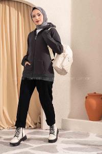 Modalamelif Önü Fermuarlı Kapşonlu Hırka Antrasit