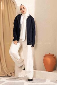 Modalamelif Önü Fermuarlı Kapşonlu Hırka Lacivert