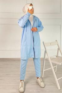 Modalamelif Önü Fermuarlı Kapşonlu İkili Takım Açık Mavi