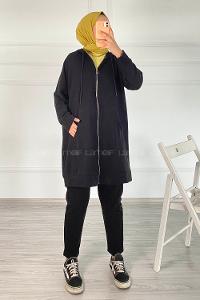 Modalamelif Önü Fermuarlı Kapşonlu İkili Takım Siyah