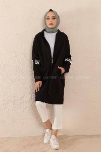Modalamelif Önü Fermuarlı Kol Baskılı Hırka Siyah
