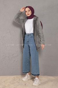 Modalamelif Önü Fermuarlı Peluş Mont Gri Siyah