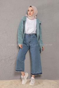 Modalamelif Önü Fermuarlı Peluş Mont Su Yeşili