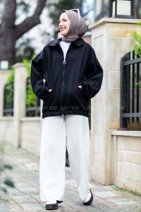 Modalamelif Önü Fermuarlı Polo Yaka Hırka Siyah