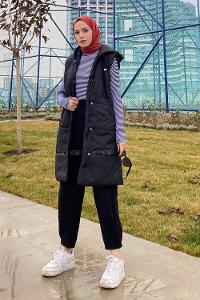Lamelif Kolsuz Tesettür Yelek Siyah