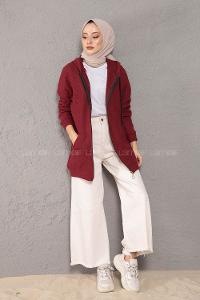 Modalamelif Önü Fermuarlı Triko Hırka Bordo