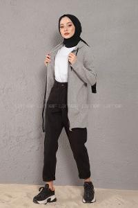 Lamelif Fiyonklu Triko Hırka Antrasit