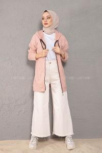 Modalamelif Önü Fermuarlı Triko Hırka Pudra
