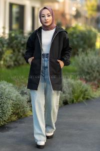 ön fermuarlı kapşonlu çift cepli yağmurluk