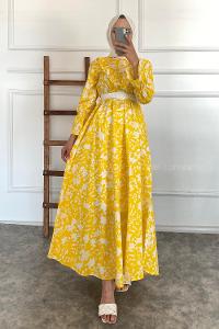 Lamelif Elica Tesettür Elbise Sarı