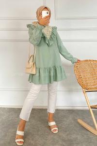 Lamelif Flores Fırfırlı Tunik Çağla Yeşili